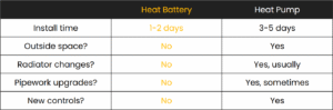 This means our installation process is basically a heating engineer & electrician removing your old boiler and connecting up the ZEB over 1-2 days – no major system overhaul required.